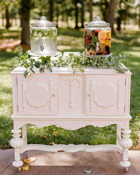Keeping your guests hydrated is important in the heat and a hydration station can not only help with that, but double as a decorative piece at your summer wedding.