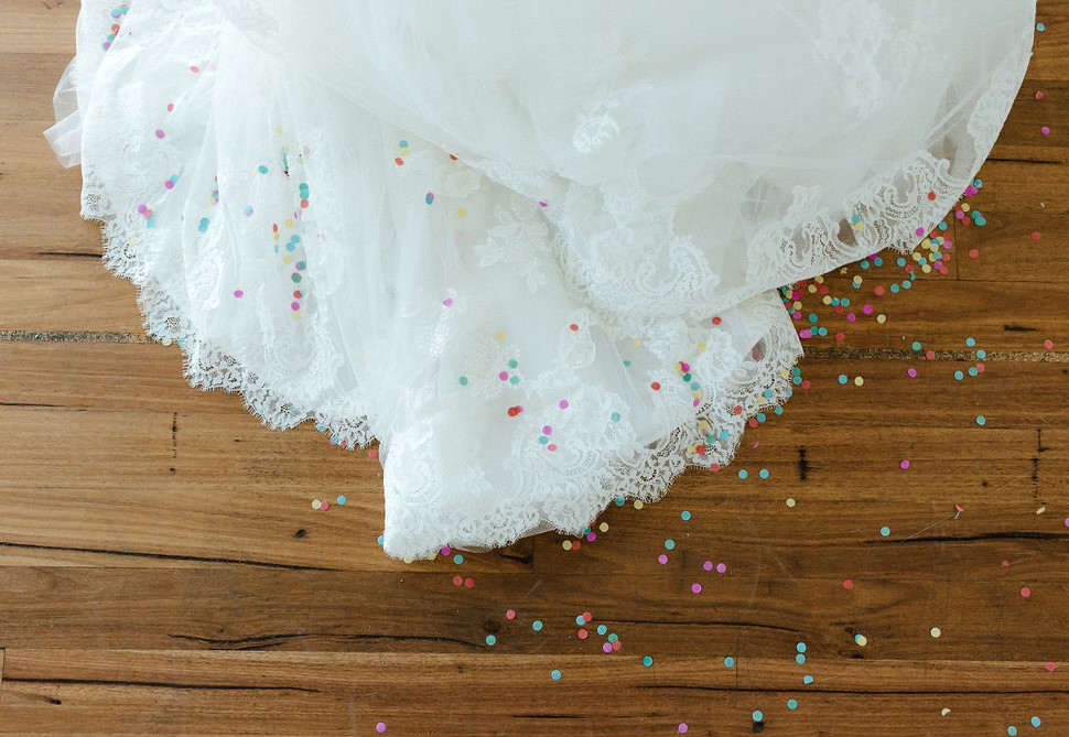 For Catherine, her gown was a reflection of her desire for versatility and elegance. She chose a stunning fit and flare dress from Karen Willis Holmes, its v-neck silhouette exuding timeless grace. For the ceremony, she added a Chantilly long-sleeved lace top, lending an air of ethereal romance. As the evening unfolded into a joyous celebration, she swapped it for a glittery belt, infusing her ensemble with a touch of fun and glamour.